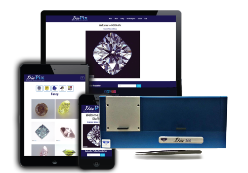 DiaPix is a technology used to capture impressive HD images of a diamond or gemstone, includes a 360 degree video to capture all parts of the diamond throughly and precisely. The video output can display on various channels including the seller's website and trade platforms.