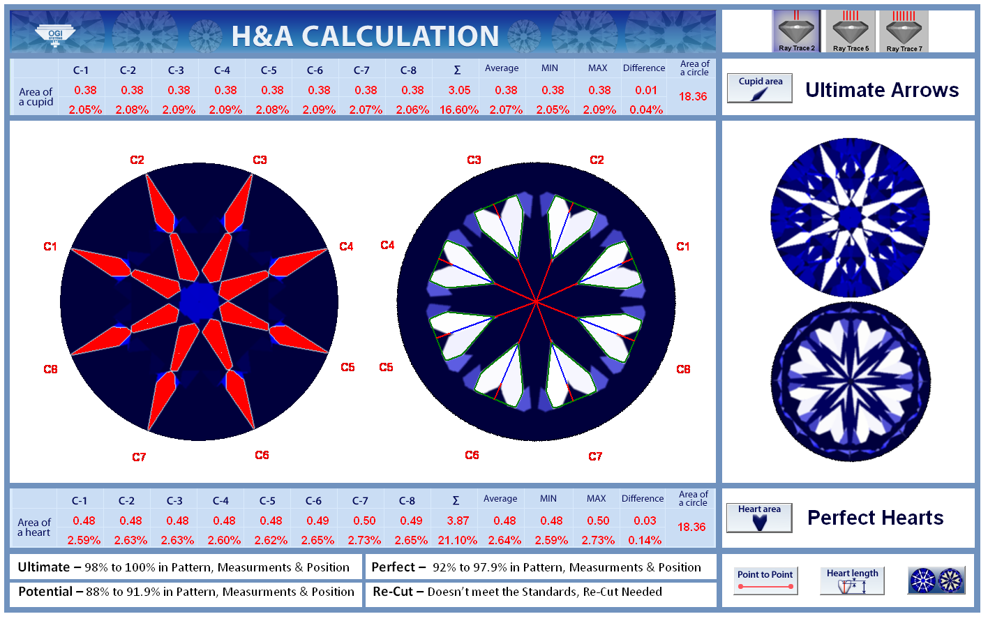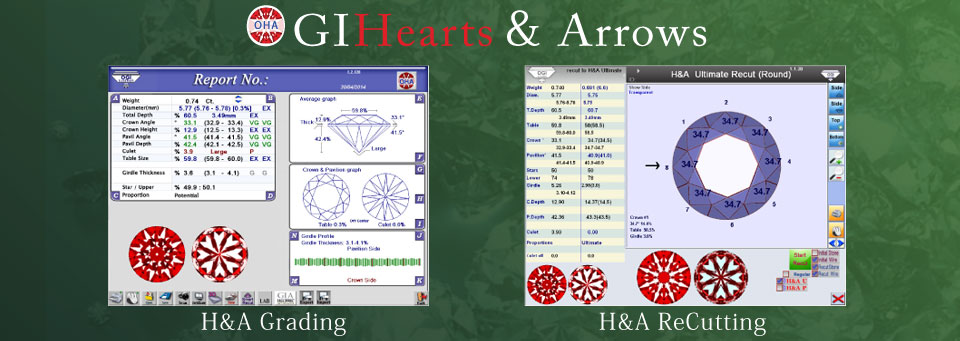diamond/jewelry and its Hearts and Arrows cut grade.
