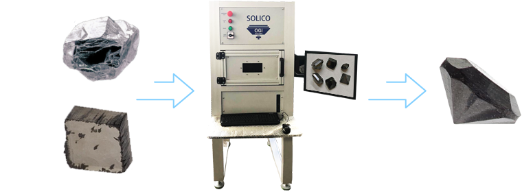 SOLICO is an acronym for "Scanner, Optimizer and Laser Integrated Compact OGI" and it is a mean of combining the laser sawing / cutting process and a 3D mapping apparatus as a single unit. The sequence of actions when using SOLICO can be deduced from its name: measuring (scanner), optimizing the yield (optimizer) and simulating and executing process (laser).